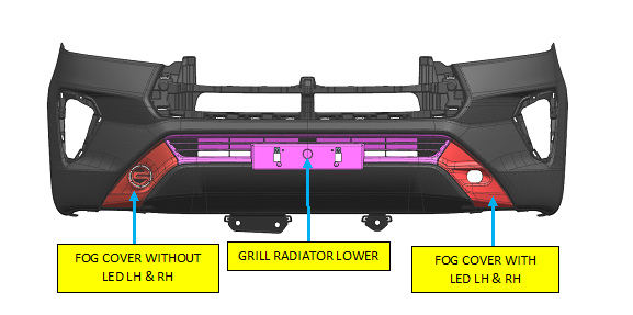 - Expectation of low cycle time despite large size bumper surface area (3600T injection machine)
